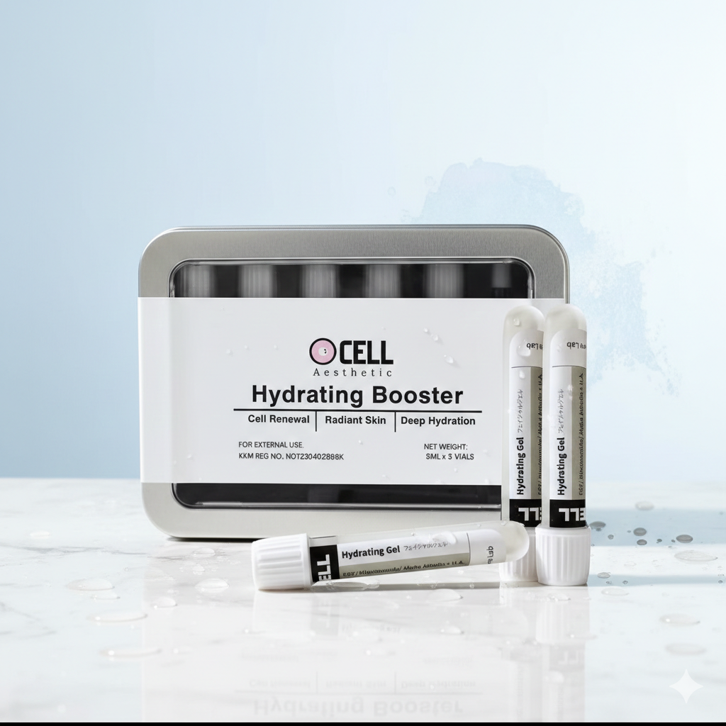 • Hydrating Booster, infused with Epidermal Growth Factor (EGF), deeply moisturizes the skin, providing long-lasting hydration for a radiant and supple complexion.