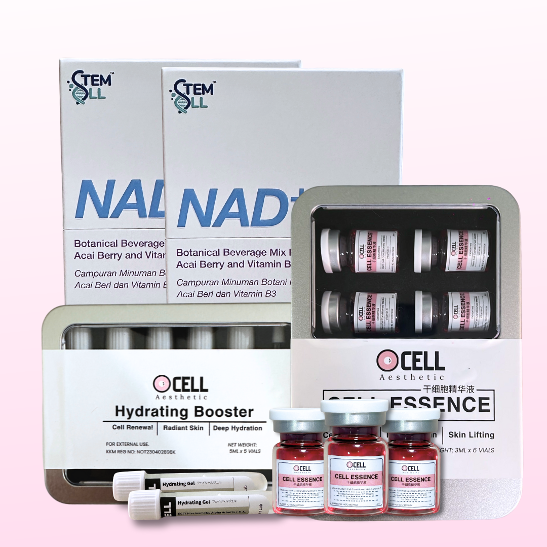 Transform your skin and body with our groundbreaking combo set featuring the NMN NAD+ supplement, Exosomes Essence, and Stem Cell Anti-Aging Moisturiser. This powerful trio works synergistically to boost NAD+ levels, rejuvenate your complexion, and deliver profound cell renewal.